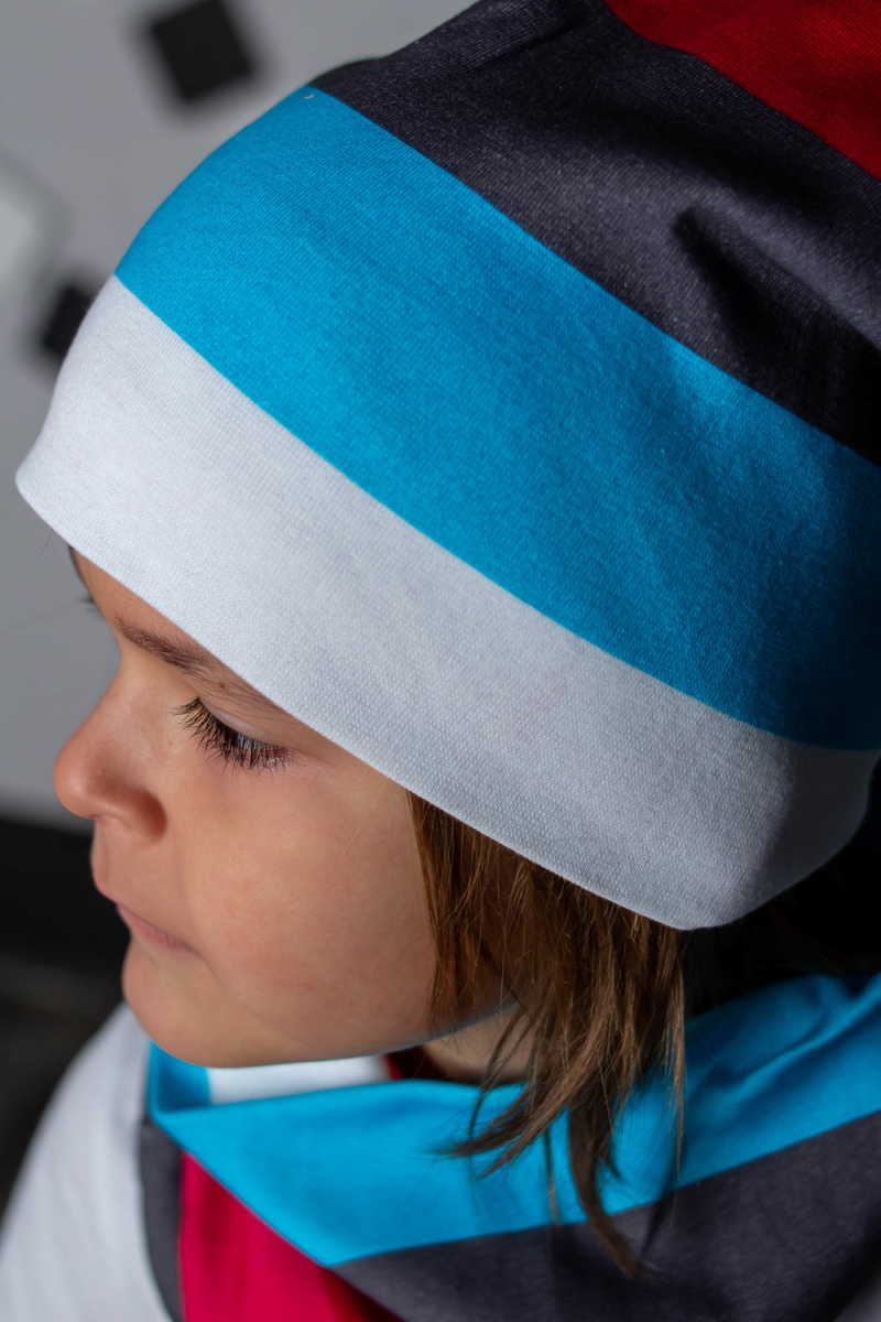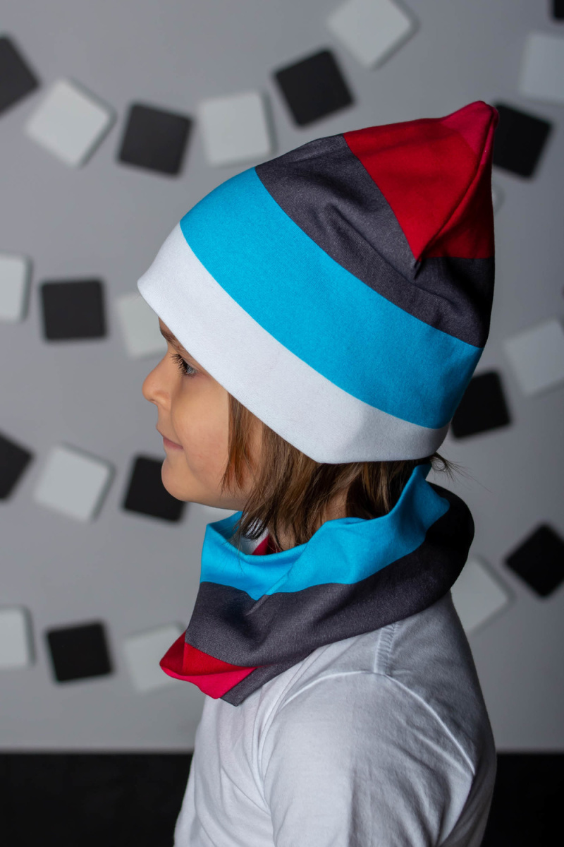 Комплект: шапка + шарф-снуд для мальчиков в насыщенной современной расцветке